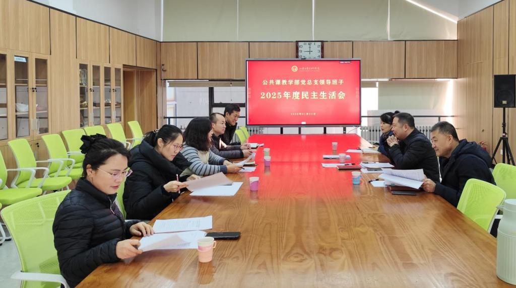 1月23日上午,公共课教学部党总支民主生活会在长清校区办公楼B450会议室召开。学校党委(学院)办公室主任、党委委员、党委组织部部长弭友海出席会议,学校专项工作组成员学校纪委综合处处长况旻、造型艺术学院娄彩虹同志列席会议。会议由公共课教学部党总支书记邹晓红主持,党总支全体班子成员参加会议。